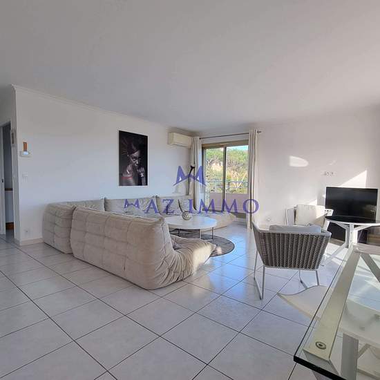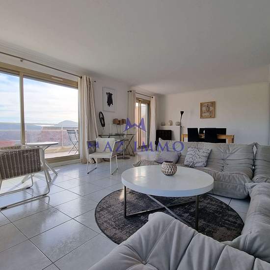 Rare à la location : Maz immo vous propose en exclusivité cet appartement T3 meublé bénéficiant d'une vue panoramique exceptionnelle. En plus de cette vue magnifique et apaisante, vous pourrez profiter d'un calme absolu, et d'une sécurité maximale, le domaine étant gardée 24h/24. Ce logement est équipée avec des prestations de qualité, et est loué meublé, les meubles étant en parfait état. Outre le salon de 38 m2 prolongé d'une belle terrasse, vous bénéficierez d'une cuisine séparée, d'une chambre de 16 m2 prolongée d'une belle terrasse, et ...