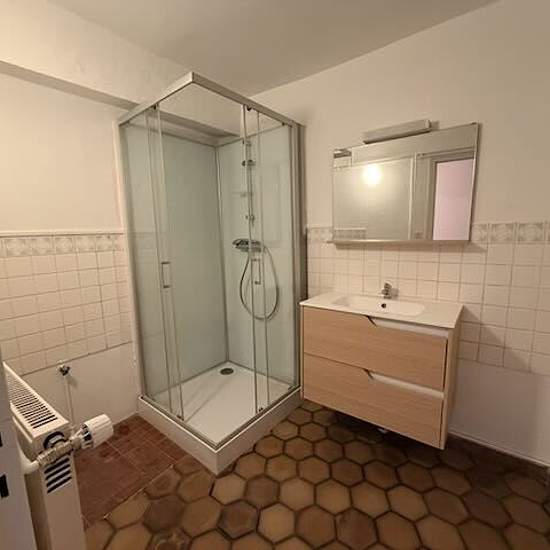 Entrée, carrelage, 4 m² WC Salle d'eau (douche) carrelage Cuisine, aménagée, équipée, carrelage, 25 m² ouverte sur séjour parquet, 20 m² Une chambre, parquet, placard, 16 m² Garage Double vitrage, chauffage central gaz de ville. Garage privatif.