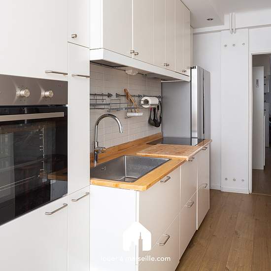 Appartement T4 situé au 3ème étage avec ascenseur d'une résidence de bon standing. Refait à neuf, il comprend : - une pièce de vie ouverte sur un balcon vue mer ; équipée d'un canapé convertible, d'une table basse, d'une TV, de nombreux rangements, d'une table à manger 6/8 personnes, et d'un coin bureau. - une cuisine américaine totalement aménagée et équipée (plaques de cuisson induction, lave-vaisselle, four, hotte, micro-onde, cafetière Nespresso, bouilloire, grille-pain, vaisselle, etc..) - une buanderie avec lave-linge, placards et éten...