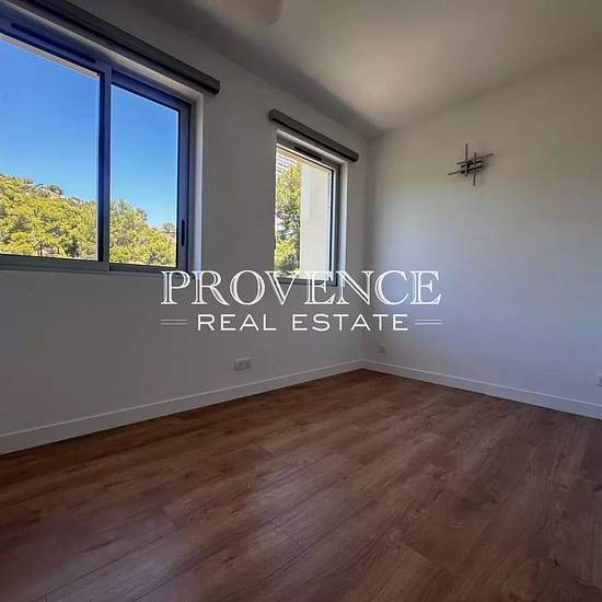 LA CADENELLE - LOCATION NON MEUBLEE - RARE Dans résidence fermée et sécurisée 24/24, vous serez séduits par ce très bel appartement VUE MER de type 3 entièrement rénové d'une surface habitable de 84m² profitant d'un jardin suspendu de 120m² aménagé. Distribution comprenant séjour avec cuisine US équipée, 2 chambres avec rangements, 1 salle de bains, 1 toilette indépendant. 1 place de parking et une cave complètent ce bien rare à la location. Belle exposition plein sud. Résidence fermée très prisée avec piscine, tennis, minibus, restaurants e...