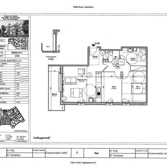 Résidence récente de 2020 ! Soumis au dispositif de défiscalisation Pinel ! En location : découvrez à MONT SAINT AIGNAN (76130) cet appartement de 3 pièces de 64,25 m². Dans une résidence neuve, cet appartement de 64 m² comprend une entrée avec placard, un salon donnant sur un balcon, une cuisine équipée ouverte, un vouloir distribuant deux chambres dont une avec placard puis une salle de bains. Profitez d'une place de parking en sous-sol. Loyer : 758 euros Charges : 68.9 euros Caution : 758 euros Honoraires : 706.75 euros Disponible dès le ...