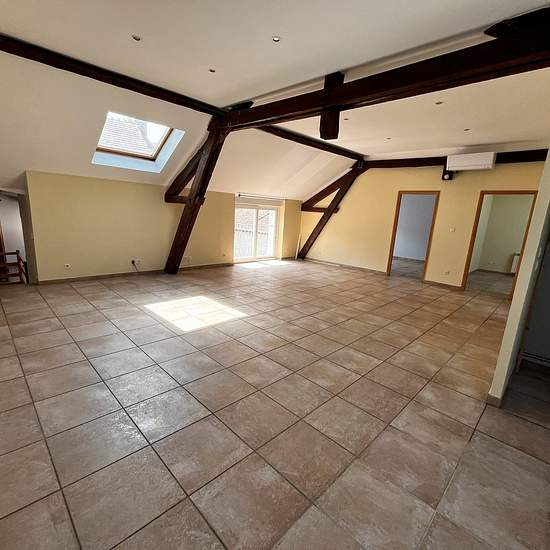 Grand appartement T3 duplex avec terrasse comprenant : entrée, buanderie/WC, pièce. A l'étage : mezzanine, salle d'eau/WC, grande pièce principale avec coin cuisine, salle de bains/WC, 2 chambres. Chauffage clim réversible/électrique. Superficie habitable : 131,19 m² - Disponible -APPT T3 AVEC GRANDE PIECE PRINCIPALE - BEAUX VOLUMES - TERRASSE - SITUE DANS UNE COUR INTERIEUR- CENTRE VILLE -