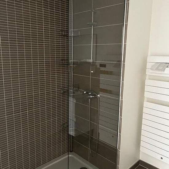 Au 1er étage avec ascenseur dans résidence de standing T3 avec hall d'entrée, cellier, cuisine équipée ouverte sur le séjour, salle d'eau, wc. Terrasse - 1 garage fermé avec portail électrique - chauffage individuel gaz et clim.