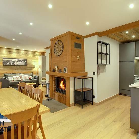 A propos de ce bien Cet appartement 2 chambres Cabine Duplex avec cheminée est situé au troisième étage de la résidence 5* Auberge Jérôme aux Arcs 1950 et peut accueillir jusqu'à 08 personnes. D'un superficie de 80m2, l'appartement se compose : Au Niveau principal : - D'une cuisine entièrement équipée ouverte sur un vaste séjour lumineux avec cheminée ; - D'une terrasse exposition Ouest avec vue sur les montagnes ; - D'un salon avec 1 canapé convertible 2 couchages ; - D'une première chambre dite cabine avec 1 canapé convertible 2 couchages...