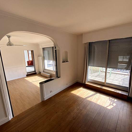 Moulins Appartement rare de type 2 bis de 66 m² avec terrasse de 22 m² , cave et ascenseur. Situé dans un immeuble de standing, très calme, lumineux et spacieux cet appartement est idéalement situé à 2 pas du centre ville, composé d'une entrée spacieuse, un double séjour, une cuisine aménagée, une salle d'eau récente, un wc indépendant Un bow window donne un charme supplémentaire à l'appartement. Chauffage gaz individuel, double vitrage Loyer : 600 euros Charges : 85 euros ( communs, eau froide, entretien chaudière) DG : 600 euros FA : 540 e...