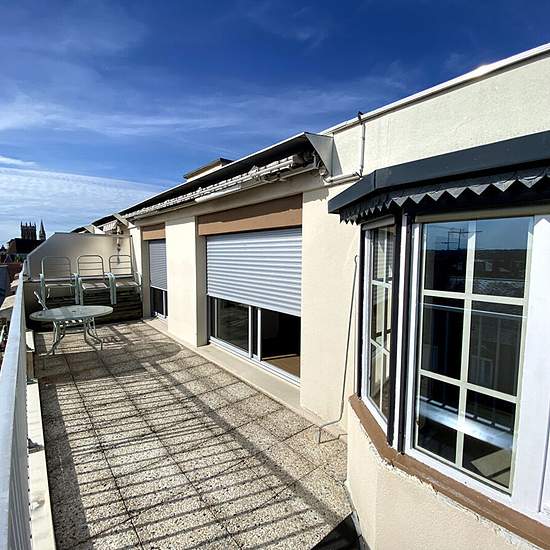 Moulins Appartement rare de type 2 bis de 66 m² avec terrasse de 22 m² , cave et ascenseur. Situé dans un immeuble de standing, très calme, lumineux et spacieux cet appartement est idéalement situé à 2 pas du centre ville, composé d'une entrée spacieuse, un double séjour, une cuisine aménagée, une salle d'eau récente, un wc indépendant Un bow window donne un charme supplémentaire à l'appartement. Chauffage gaz individuel, double vitrage Loyer : 600 euros Charges : 85 euros ( communs, eau froide, entretien chaudière) DG : 600 euros FA : 540 e...