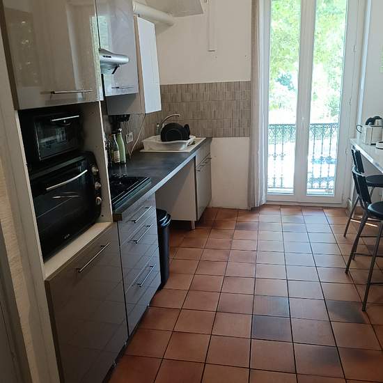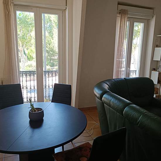 Narbonne Jardin de la révolution : Appartement spacieux traversant de type 3 de 75m2 situé au 1er étage d'un immeuble donnant sur le jardin de la révolution. Comportant entrée avec deux placards de rangement, séjour-salon lumineux avec balcons, cuisine indépendante semi-équipée, deux chambres, salle d'eau, wc. Double vitrage pvc, volets roulants électriques, chauffage électrique, eau incluse dans les charges Disponible le 1er Septembre pour 685 euros charges comprises (détails des charges : taxe ordures ménagères, minuteries des communs, pro...