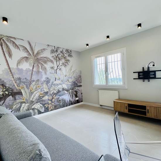 T3 de 81,34m2 + terrasse 27m2 + jardin 20m2 a 15min en voiture de Nice Ouest. Situé à CASTAGNIERS, 365 chemin du Carretier. Au sein d'une belle provençale arborée en position dominante et avec une vue imprenable sur la mer et les montagnes découvrez à la location vide cet appartement luxe, refait intégralement avec des matériaux de haut standing il y'a un an. Agencement optimum, beau séjour ouvrant sur cuisine entièrement équipée. 2 grandes chambres (15 et 16m2) Douche à l'italienne. Buanderie et cellier 1 place de stationnement privative au...