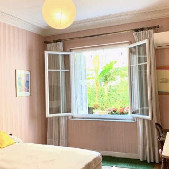 Appartement bourgeois meublé de 3 pièces pour location à deux étudiants, rue de France, derrière l'hôtel Negresco et à moins de 100 mètres de la Promenade des Anglais, au-dessus d'une salle de sport Basic Fit et à 200 m de l'arrêt navette bus Sophia Express et 300 m de la station de tramway Ligne 2 (Station Alsace Lorraine). Situé au 1er étage d'un immeuble calme. Salon et cuisine donnant sur rue, deux chambres donnant sur toit-jardin au calme, salle de bain, wc séparés, cuisine équipée rénovée. Grands placards. Chauffage collectif. Toutes l...