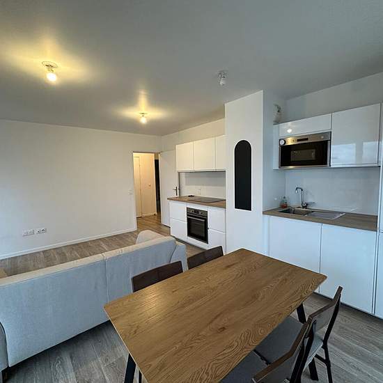A louer, bail meublé , appartement de type 3 pièces avec terrasse et parking situé au 4ème étage d'un immeuble de 6 étages, d'une surface de 62.74 m². Ce bien comprend 2 chambres spacieuses, idéal pour une petite famille ou un couple. Situé dans le secteur calme du Canal de l'Ourcq à Noisy le Sec, cet appartement bénéficie d'un accès facile aux transports en commun : tramway à 7 minutes, bus à 2 minutes et RER à 15 minutes. A proximité, vous trouverez plusieurs établissements scolaires tels que l'École Maternelle Jean Renoir, l'École Materne...