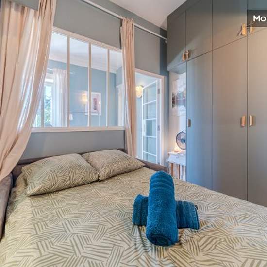 For rent in Oullins, on the outskirts of Lyon, this superb, charming 70 m² flat is located on the garden level of an elegant 18th century manor house surrounded by greenery. A real haven of peace, bright, quiet and comfortable. Benefits of this flat: The charm of the old, the comfort of the new and a strategic location on the outskirts of Lyon: a rare property to discover! Small private garden of 80m2 with wooden terrace, large parasol, Weber barbecue, furniture, etc. A terrace accessible from the bedroom Air conditioning in the living room ...