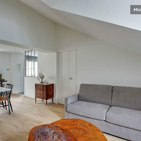 This charming 2-room apartment is located rue Michel Le Comte in the marsh. The flat is on the 4th floor with lift of a renovated and well maintained building. The flat is available for 4 people. Facilities : WiFi, international TV channel, cable Sofa bed 160 King size bed in the bedroom Fully equipped kitchen (dishwasher, washing machine, hotplates, traditional oven...) Very nice view of the roofs of Paris Elevator Unlimited WiFi internet access, television, fridge, freezer, coffee maker, kettle, toaster, hair dryer, household linen sheets ...