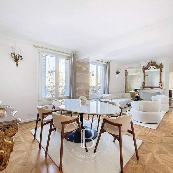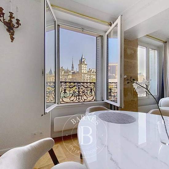 Monnaie - Quai des Grands Augustins - Un appartement meublé, d'une surface de 56,20 m², situé au 1er étage par escalier d’un immeuble datant de 1897, profite d’une rénovation récente, d'une vue sur la Seine, le Palais de Justice et la Cathédrale Notre-Dame, du charme de l’ancien: parquet, moulures, cheminée et d’une belle luminosité grâce à ses deux grandes fenêtres du salon. Ce bien se compose comme suit : une entrée, un salon/salle à manger, une cuisine séparée meublée et équipée, deux chambres sur cour, dont une avec sa salle d'eau et toi...