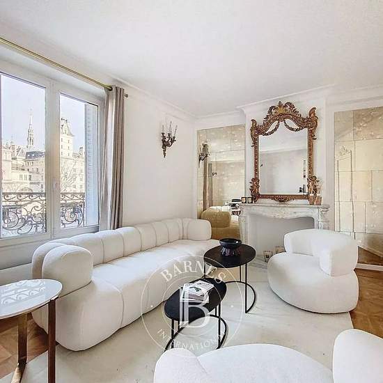 Monnaie - Quai des Grands Augustins - Un appartement meublé, d'une surface de 56,20 m², situé au 1er étage par escalier d’un immeuble datant de 1897, profite d’une rénovation récente, d'une vue sur la Seine, le Palais de Justice et la Cathédrale Notre-Dame, du charme de l’ancien: parquet, moulures, cheminée et d’une belle luminosité grâce à ses deux grandes fenêtres du salon. Ce bien se compose comme suit : une entrée, un salon/salle à manger, une cuisine séparée meublée et équipée, deux chambres sur cour, dont une avec sa salle d'eau et toi...