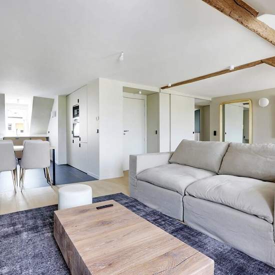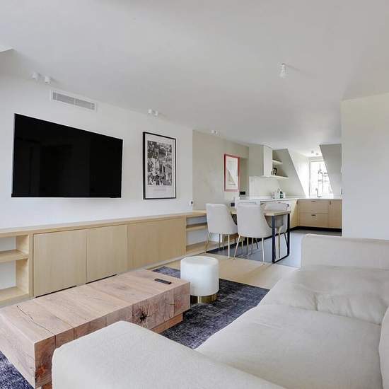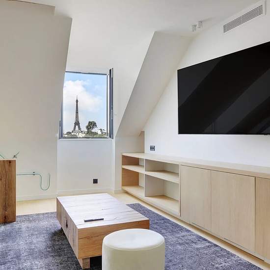 PALAIS de l'ÉLYSÉE - Emplacement prestigieux en face du Palais Présidentiel. Situé au 5ème étage avec ascenseur, vous n'aurez qu'à poser vos valises dans ce nid d'aigle exceptionnel de 88 m² au sol (76 m² habitables) qui vous offre un maximum de sécurité, climatisation, et une rénovation de haut calibre. Pièce de vie avec trois fenêtres orientées plein sud offrant des vues "à couper le souffle" sur la Tour Eiffel et les monuments de Paris. Magnifique cuisine américaine entièrement équipée/aménagée, idéale pour ceux qui aiment cuisiner. Deux ...