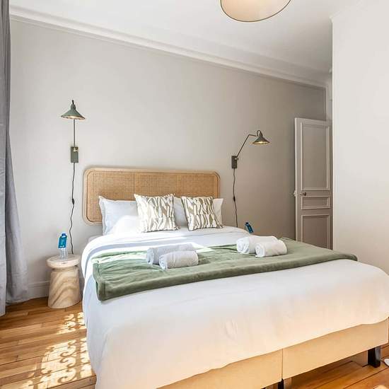 [EN] The stylish Sweett Wagram Deluxe VII apartment is located in the very centre of Paris, only a few steps away from the Arc de Triomphe. Our local interior designer has carefully decorated this charming two-bedroom to reflect the French glamour, you will especially appreciate the attention to detail and elegant furniture. The fully equipped kitchen is perfect for cooking a meal and the high-quality mattresses ensure you a great night’s sleep. Located In the 8th arrondissement, you'll find the tree-lined Boulevard Haussmann just a few step...