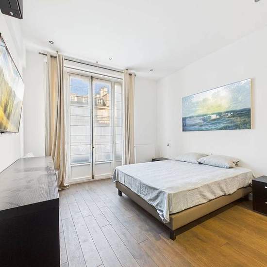 Au cœur de la très recherchée rue du Faubourg Saint-Honoré, à proximité immédiate de l’Élysée, situé au 3ᵉ étage avec ascenseur d’un superbe immeuble en pierre de taille avec gardienne, appartement meublé de 100 m². Il se compose d’une entrée, d’un vaste séjour avec cuisine américaine entièrement équipée, d’une suite parentale avec salle de bains (baignoire balnéo, douche hammam et WC), d’une seconde chambre avec salle d’eau, ainsi que de WC séparés. Climatisation, prestations haut de gamme, immeuble sécurisé avec gardienne. Idéal pied-à-ter...