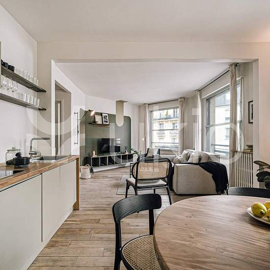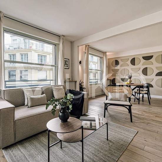 Magnifique appartement rénové et meublé rue Joseph Sansboeuf, dans le quartier de la Madeleine du 8ème arrondissement. Il est situé au 4ème étage à proximité des gares Saint Lazare, Saint-Augustin et Havre - Caumartin. Le Théâtre des Mathurins, le Moulin Rouge et le Palais Garnier sont à proximité. Il comprend deux chambres, l'une avec un lit double et l'autre avec un lit simple, un salon, une cuisine et une salle de bains. Le lit est équipé de draps doux, idéaux pour une bonne nuit de repos. La cuisine est entièrement équipée des derniers a...