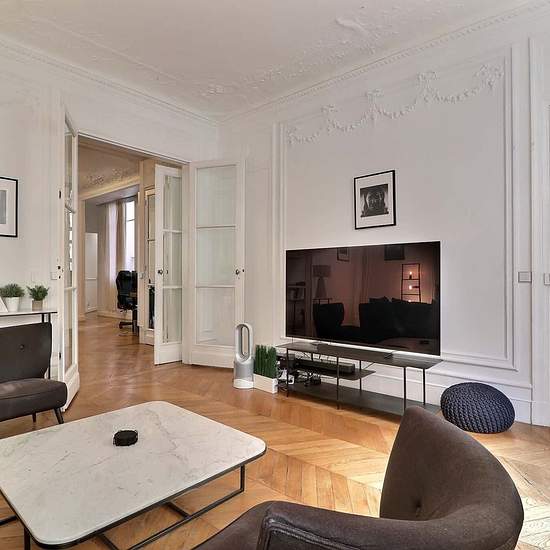 [FR] Ce très bel appartement de 145 m² , 4 pièces, est situé rue Georges Ville dans le 16ème arrondissement , au 1er étage d'un immeuble du 19ème siècle et il peut accueillir 6 personnes. Cet appartement est équipé avec : un lave linge, un sèche linge, un lave-vaisselle, les chaines cablées, la télévision, un accès internet haut débit illimité avec le wifi, une cheminée décorative. L'immeuble du 19ème siècle est équipé avec : un ascenseur, un code d entrée, un interphone, une concierge. [EN] This beautiful 145 m², 4-room apartment is located...