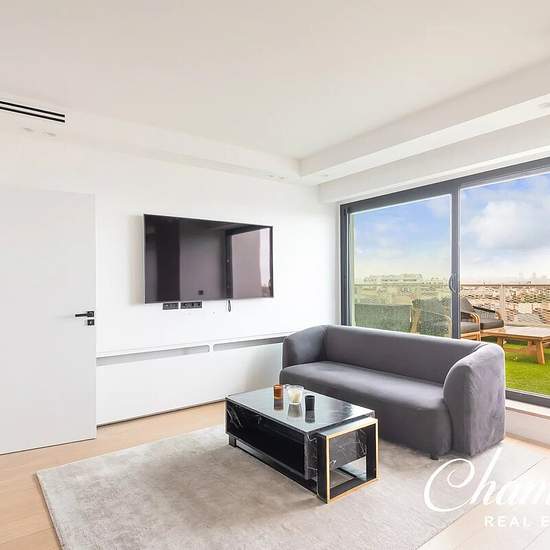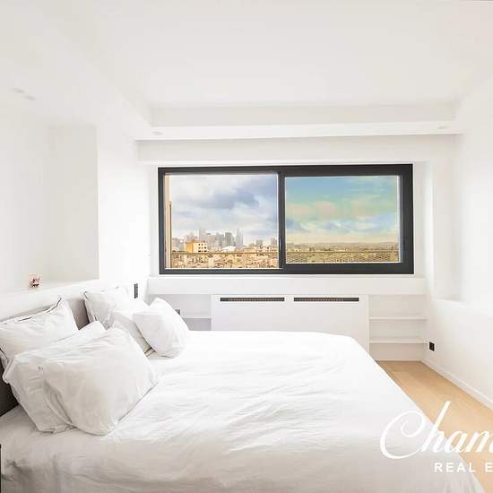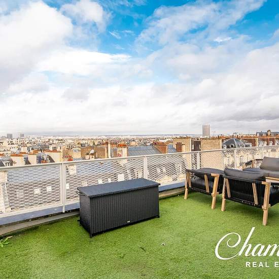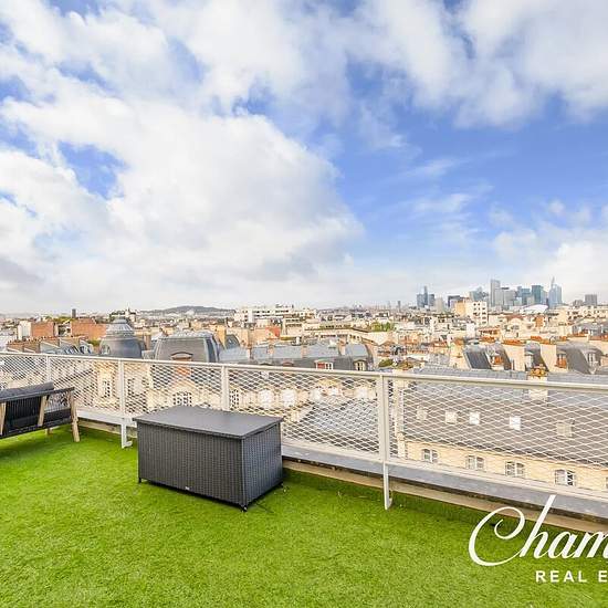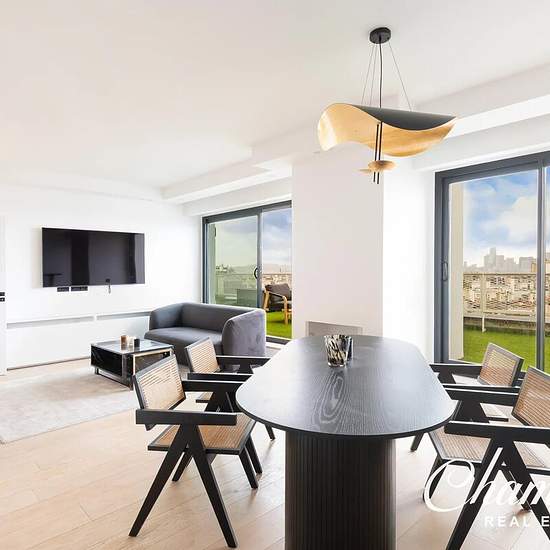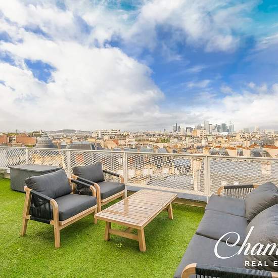 Situé au 10ᵉ étage avec ascenseur d’un immeuble moderne aux belles parties communes, ce superbe appartement de 70 m², en parfait état, bénéficie d’une luminosité exceptionnelle et d’une magnifique terrasse de 50 m² avec vue panoramique dégagée sur La Défense et les toits de Paris. Il se compose d’une entrée, d’un séjour lumineux avec cuisine américaine entièrement équipée, ouvrant directement sur la terrasse, idéal pour recevoir. La partie nuit comprend une suite parentale avec des rangements et salle de bain, ainsi qu’une seconde chambre av...