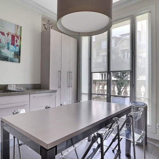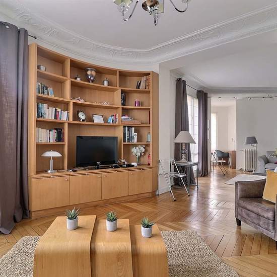 [FR] Cet appartement de 130 m² , 4 pièces, est situé rue Raynouard dans le 16ème arrondissement , au 5ème étage d'un immeuble du 19ème siècle et il peut accueillir 7 personnes. Cet appartement est équipé avec : Air Conditionné, un lave linge, un sèche linge, un lave-vaisselle, les chaines cablées, la télévision, un accès internet haut débit illimité avec le wifi, un téléphone, une cheminée décorative. La référence #9101 est le même appartement avec une chambre en moins. L'immeuble du 19ème siècle est équipé avec : un ascenseur, un code d ent...