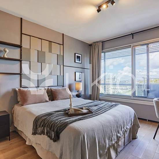 Magnifique appartement rénové et meublé situé avenue Foch, dans le quartier du Trocadéro, dans le 16e arrondissement. Il est situé au 8e étage avec ascenseur, à proximité des stations Victor Hugo, Porte Maillot et Boissière. Les attractions à proximité comprennent l'Arc de Triomphe, Le Monde de Noé - Centre Dauphine et le Musée national des arts asiatiques - Guimet. Il se compose de deux chambres, d'un salon, d'une cuisine et de deux salles de bains. Le lit est équipé de draps doux, idéaux pour passer une bonne nuit de sommeil. La cuisine es...