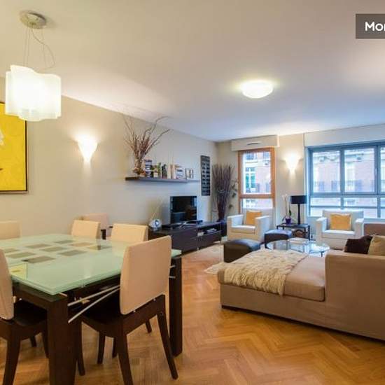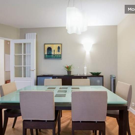 This beautiful, elegant 100 m² flat with a 7 m² terrace is located on Avenue Paul Doumer in the 16th arrondissement of Paris. It is located on the 3rd French floor with lift of a modern building. It offers a friendly, modern and luxurious lifestyle, and high-quality services. It can accommodate up to 4 people. It offers a large living/dining room of approximately 35 m² overlooking the street (double glazing), 2 large bedrooms with direct access to the terrace overlooking the courtyard garden, two bathrooms and a large separate fully equipped...