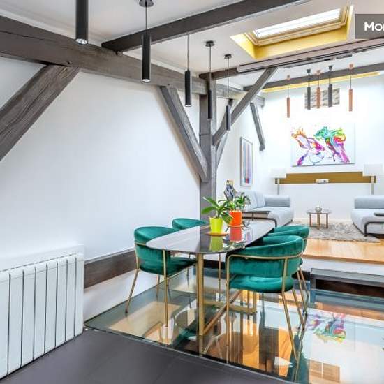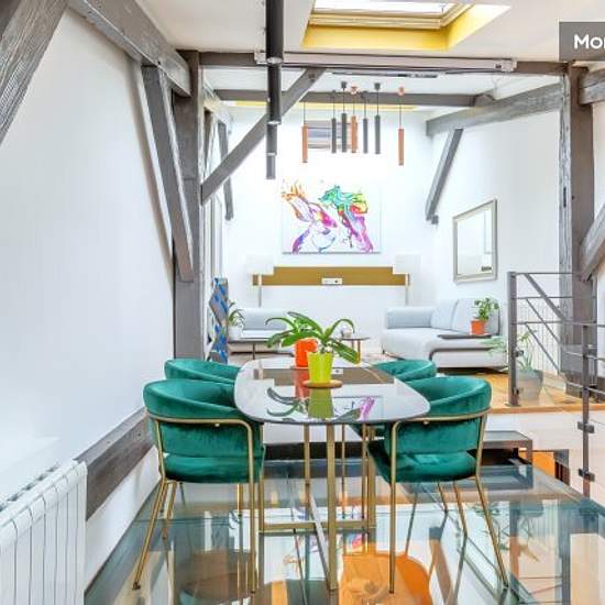Exceptional 98 m² loft on three floors. Formerly a joinery, it has been transformed into a bright, modern space just a stone's throw from the lively Batignolles district and 15 minutes from Montmartre. With 3 comfortable bedrooms, a private home cinema and a fully-equipped kitchen opening onto the living room, this place combines industrial charm with contemporary comfort. Tastefully decorated with top-of-the-range furnishings (Ghanaian marble tables, custom-made sofas, works of art) to offer the perfect balance between modernity and authent...