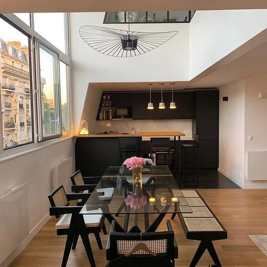 A propos de ce bien Situé rue Alfred Roll, au cœur du quartier Pereire / Wagram, ce magnifique duplex meublé de 92 m² (98 m² au sol) occupe les 3e et 4e étages, avec ascenseur, d’un immeuble ancien avec gardien. Entièrement rénové récemment, l’appartement séduit par ses volumes exceptionnels et son esprit loft. Disposition : Premier niveau : - Superbe séjour / salle à manger baigné de lumière, offrant 4,80 m de hauteur sous plafond, - Cuisine américaine ouverte, entièrement équipée, avec bar convivial, - Buanderie et dressing - Toilettes in...