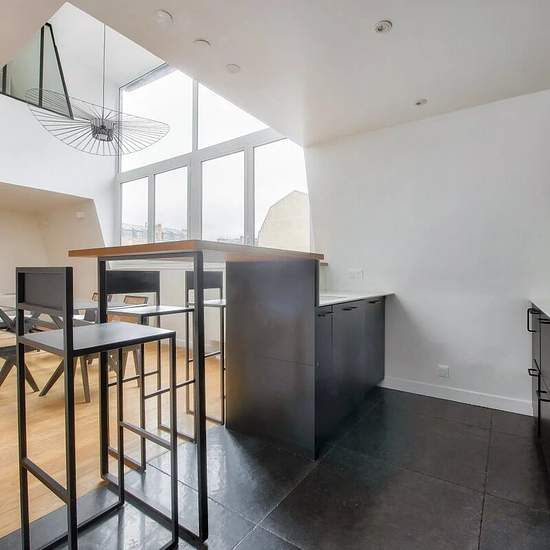 Situé rue Alfred Roll, au cœur du quartier Pereire / Wagram, ce magnifique duplex meublé de 92 m² (98 m² au sol) occupe les 3e et 4e étages, avec ascenseur, d’un immeuble ancien avec gardien. Entièrement rénové récemment, l’appartement séduit par ses volumes exceptionnels et son esprit loft. Disposition : Premier niveau : - Superbe séjour / salle à manger baigné de lumière, offrant 4,80 m de hauteur sous plafond, - Cuisine américaine ouverte, entièrement équipée, avec bar convivial, - Buanderie et dressing - Toilettes invités Second niveau a...