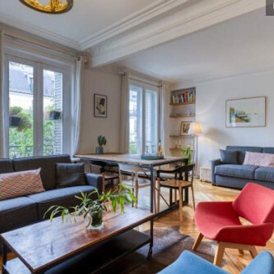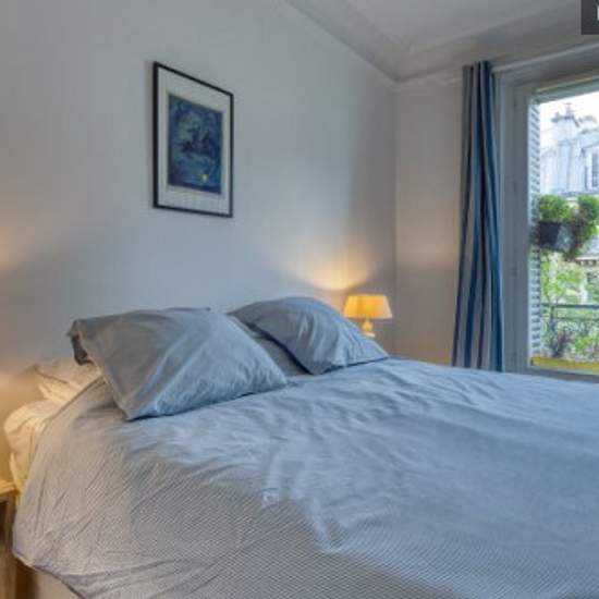 Superbe appartement cosy et plein de charme, situé dans l'une des rues les plus dynamiques de Montmartre, au pied de la Butte ! Quartier idéal et plein de vie (nombreux restaurants, commerces de bouche). A 100m du métro ! Décoré avec style et baigné de lumière et de verdure, l'appartement propose 7 couchages. Cuisine et salle de bain entièrement équipées. L'appartement est accessible par un très bel escalier parisien, refait à neuf, et n'est donc pas accessible aux personnes à mobilité réduite. La chambre comprend un lit double de 160cm de l...