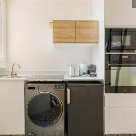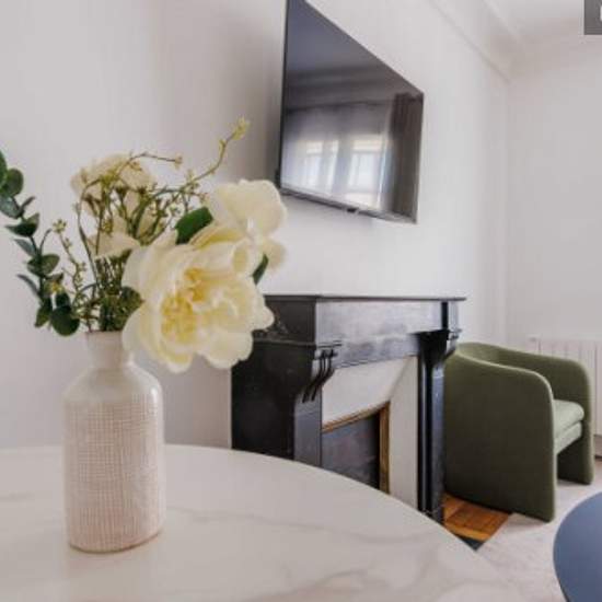 Cet appartement de 49m2 est situé au 5ème étage (sans ascenseur). Il comprend: - Une cuisine fermée, entièrement équipée et fonctionnelle : réfrigérateur, plaque de cuisson, cafetière, grille-pain, bouilloire, four, lave-linge... - Un salon avec canapé, table à manger et TV - Une première chambre avec un lit double - Deuxième chambre à coucher avec lit double - Salle de bain avec douche et WC - Un espace de rangement - TV et accès Internet haut débit - Draps et serviettes fournis Vous aurez accès à l'ensemble de l'appartement pour vous senti...