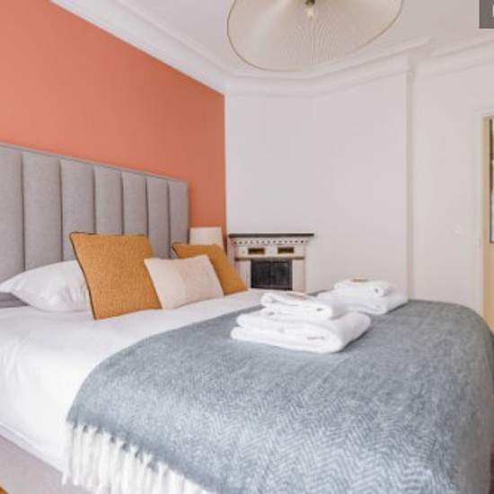 Cet appartement de 49m2 est situé au 5ème étage (sans ascenseur). Il comprend: - Une cuisine fermée, entièrement équipée et fonctionnelle : réfrigérateur, plaque de cuisson, cafetière, grille-pain, bouilloire, four, lave-linge... - Un salon avec canapé, table à manger et TV - Une première chambre avec un lit double - Deuxième chambre à coucher avec lit double - Salle de bain avec douche et WC - Un espace de rangement - TV et accès Internet haut débit - Draps et serviettes fournis Vous aurez accès à l'ensemble de l'appartement pour vous senti...