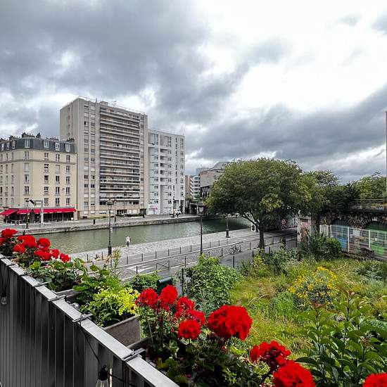 PARIS XIXème - Coup de coeur - Bel appartement, calme et très lumineux, situé quai de la Marne au premier étage d'une résidence récente, de standing, aux bords du canal de l'ourcq, à quelques pas des commerces et du parc de la Villette. Local vélo et jardin partagé accessibles aux résidents. Chauffage et eau chaude inclus dans les charges. Location meublée. Double exposition. Vue plongeante sur le canal de l'ourcq. Emplacement parking disponible en sus pour 100.00 euros/mois. Entrée avec placard, WC avec lave-main et placard, salle de bains ...
