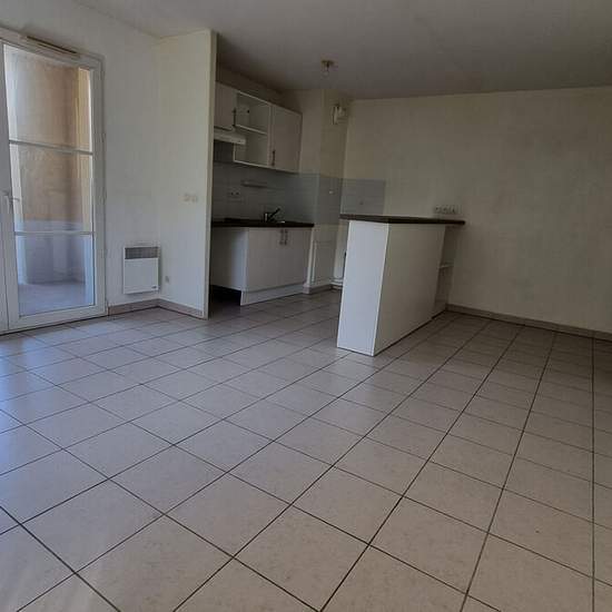Appartement T3 au rez-de-chaussée d'une résidence sécurisée. Il est composé d'une entrée avec placard, séjour avec cuisine américaine, 2 chambres, salle de bain, WC séparé et un balcon. Les charges comprennent l'eau et l'entretien des communs. Libre mi-décembre.