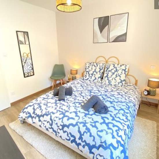 Bienvenue à l'appartement "L'Essentiel" au centre ville de Hauteville-Lompnes, tout équipé, de 50m2, situé au premier étage avec entrée sécurisée. Séjour: Un séjour ouvert sur la cuisine équipée d'un canapé convertible et d'un écran plat. Une table à manger pouvant accueillir six personnes ainsi que six chaises. Wi-fi inclus. Cuisine: Une cuisine ouverte et entièrement équipée avec plaque à induction, frigo, micro-ondes, grille-pain, cafetière, Senseo, bouilloire. Salle de bain: Une salle de bain avec grande douche, meuble vasque, sèche, ser...
