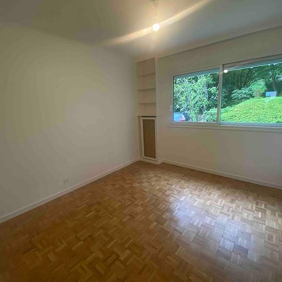 POISSY - Rue Maryse Bastié, résidence "Les Chênes" à l'orée du bois de Saint-Germain, immeuble de bon standing, au rez de chaussée, appartement traversant composé d'une entrée, grande cuisine aménagée et équipée, séjour, dégagement avec placards, wc séparés, salle de bains, deux chambres, chauffage collectif, cave en sous-sol.(photos 2024)