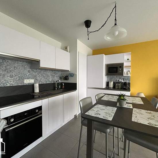 Appartement T3 - Pornic - Le Cabinet CADORET vous propose la location d'un appartement T3 meublé, situé au cœur de Pornic, dans une résidence calme et agréable, à proximité immédiate des commerces, du port et des commodités. Il comporte une entrée avec placard amenant à la pièce de vie avec cuisine ouverte aménagée et équipée (réfrigérateur-congélateur, lave-vaisselle, hotte, four, plaques, micro-ondes) le tout donnant sur une terrasse. Le coin nuit est composé d'une salle de bains et de WC séparé ainsi que de deux chambres. A cela s'ajoute ...