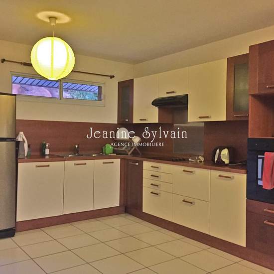 Dans résidence EEVA sur les hauteurs de Miri, bel appartement de type F3 avec une grande cuisine aménagée et équipée, séjour donnant sur la terrasse couverte, 2 chambres climatisées, 1 salle d'eau, 1 wc indépendant, 2 places de parking couvert, 1 cellier.