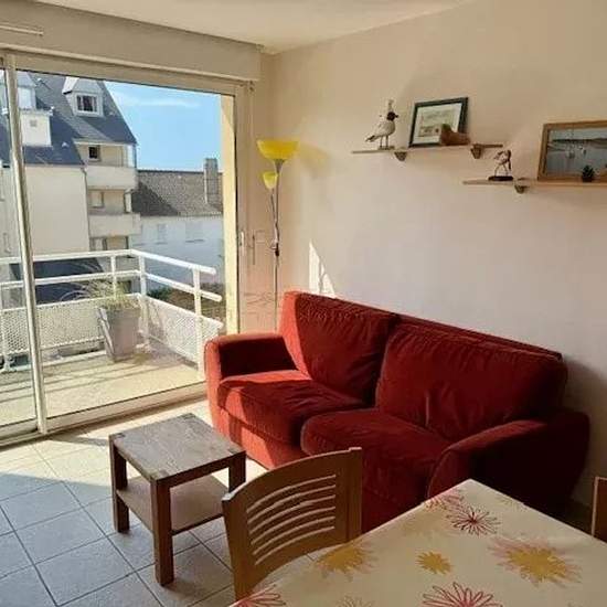 Appartement à Quend-plage, comprenant une entrée, un séjour ( avec canapé lit) avec cuisine donnant accès sur une terrasse ( vue latérale mer), un coin cabine avec un lit superposé, une salle de douche, un toilette et à l'étage, une chambre avec un lit double et une salle de bain.