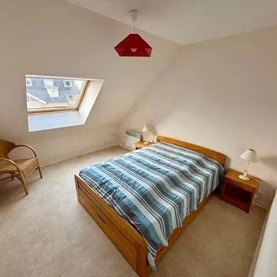 Appartement à Quend-plage, comprenant une entrée, un séjour ( avec canapé lit) avec cuisine donnant accès sur une terrasse ( vue latérale mer), un coin cabine avec un lit superposé, une salle de douche, un toilette et à l'étage, une chambre avec un lit double et une salle de bain.