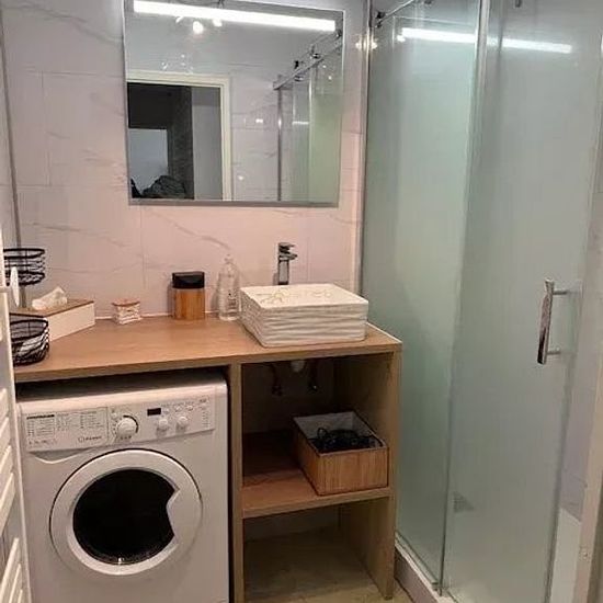 Appartement dans résidence récente avec ascenseur, comprenant : une entrée, un séjour ( avec canape lit) avec cuisine ouverte donnant accès à une terrasse plein sud, 1 chambre avec un lit 2 personnes, 1 chambre avec un lit gigogne, une salle de douche, un toilette et un emplacement de parking en sous-sol.