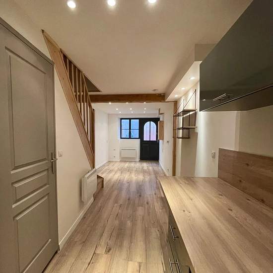 Au centre du village de Réalmont, petite maison de village T3, sur 3 niveaux, d'une surface habitable d'environ 65m2. Cette habitation offre au rez-de-chaussée une cuisine ouverte sur le séjour et un placard encastré. Au premier étage une chambre et une salle d'eau, au dernier étage une grande chambre. Dossier qualifié exigé.