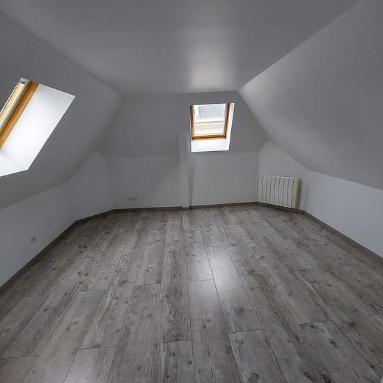 À LOUER à REIMS (51100) Dans une résidence de standing, un appartement T3 en triplex, avec entrée privative, comprenant au rez-de-chaussée un sas avec placard menant au 1er étage lequel desserre une salle de bain, un WC séparé, un grand placard, un séjour, une cuisine meublée et partiellement équipée (plaques, hotte) - au 2ème étage : 2 chambres sous pentes dont une avec dressing (surface au sol : 13,75 m² et 16,60 m²). Un emplacement de parking en sous-sol. Surface habitable : 59,02 m² - Surface au sol : 75,27 m² - Chauffage individuel élec...