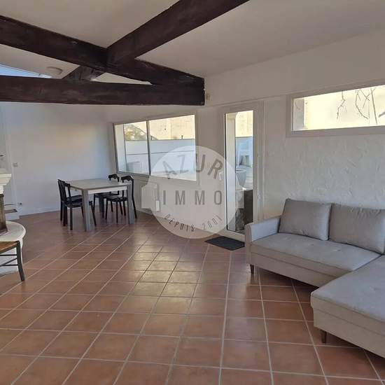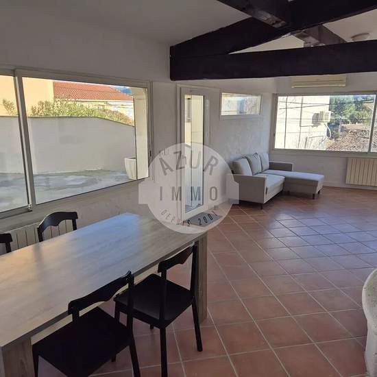 Lascours_Location maison de ville type 3 75m² avec terrasse Dans le village provençal de Lascours, au calme et en position dominante, venez découvrir cette charmante maison de ville de type 3 de 75,06m² composée de 2 chambres, une salle d'eau, toilettes séparés, deux placards, une grande et lumineuse pièce de vie avec cheminée ainsi qu'une cuisine semi ouverte équipée. Une belle terrasse accessible depuis le séjour vient compléter le bien. Bien rénovée récemment. Bail meublé d'un an renouvelable. Libre immédiatement. Loyer : 1300euros (hors ...