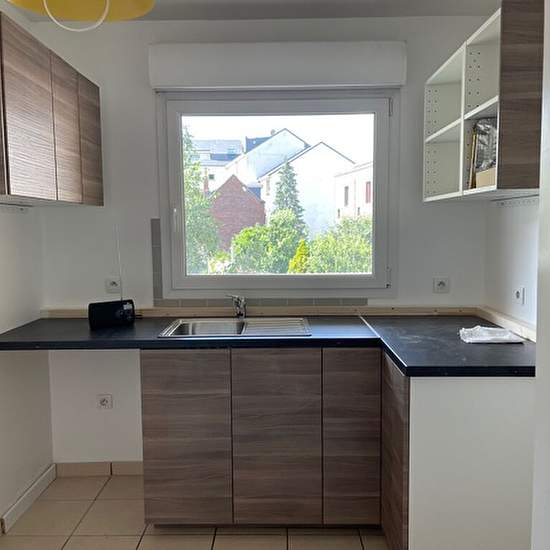 PROCHE DU SIEGE DE LA MATMUT SAINT SEVER - rue de Lourdines Dans une agréable résidence, F3 de 68,97 m² au 1er étage avec ascenseur, comprenant : entrée avec placard, séjour donnant sur terrasse de 9 m² au calme sur cour intérieure, cuisine aménagée, dégagement avec dressing à aménager, 2 chambres dont 1 avec placard, salle de bains. Cellier. Double place de parking en s/sol. Chauffage individuel électrique. Eau chaude et eau froide individuelles. DPE EN COURS Disponible à partir du 12 mars 2026