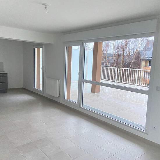 ROUEN (76100) 27-29 rue Desseaux Disponible, nous vous proposons ce bel appartement T3 situé au 3ème étage d'une résidence neuve. Il se compose d'une entrée, d'un séjour lumineux avec coin cuisine, de deux chambres, d'une salle de bains, WC. Une terrasse, un emplacement de stationnement. Dispositif FISCAL PINEL Chauffage individuel électrique Loyer : 798 euros/mois Charges : 60 euros/mois