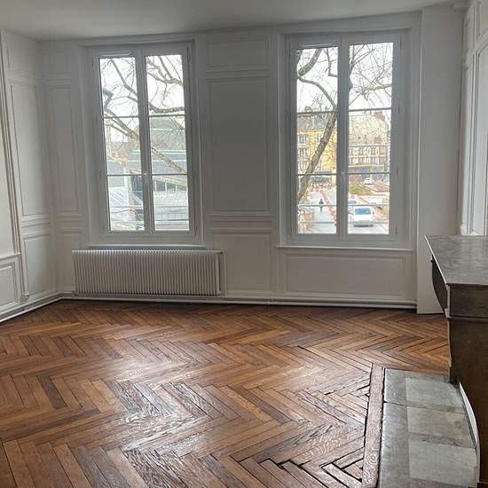 ROUEN (76000) 15 rue Guillaume le Conquérant Disponible début Mars, TRES BELLE SURFACE pour cet appartement idéalement situé en plein coeur de ROUEN et offrant entrée, séjour-salon, cuisine indépendante aménagée et équipée, deux chambres, salle de douche. Chauffage collectif au gaz. Loyer : 800 euros/mois Charges : 210 euros/mois