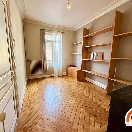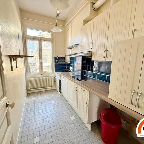 ROUEN CENTRE PROCHE REPUBLIQUE ET PLACE SAINT MARC - F3 de 54 m² ROUEN CENTRE PROCHE REPUBLIQUE ET PLACE SAINT MARC - rue Alsace Lorraine Appartement de type F3 de 54 m², au 3ème étage d'un immeuble calme et sécurisé, comprenant : entrée avec placard de rangements, séjour parqueté avec étagères murales et meuble TV, cuisine séparée aménagée (avec hotte et plaques de cuisson), deux belles chambres dont une avec rangements, salle de douches. Eau froide collective incluse dans les charges. Chauffage et eau chaude individuels gaz. Disponible dè...