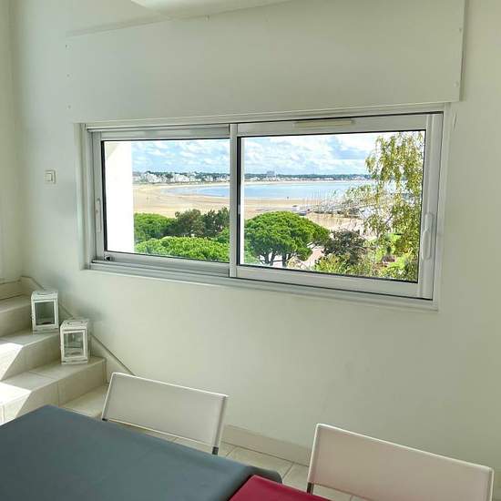 Appartement en duplex Meublé au quatrième étage avec ascenseur, entrée avec escalier, grande pièce de vie, vue mer avec cuisine ouverte, cellier, deux chambres avec placards (dont une vue mer), salle d'eau, wc séparés, palier et grands placards sous comble. Loyer 980 € dont 76 euros de charges pour la taxe d'ordure ménagères et les charges de copropriété. Garantie Loyer Impayés - Dossier à compléter en ligne pour visiter. Résidence sécurisée, interphone, ascenseur.